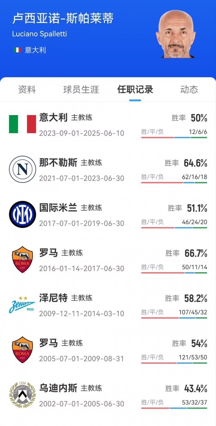 斯帕莱蒂的团队管理始终游走于纪律严明与人文关怀之间。在泽尼特时期,他既能通过铁腕手段终结更衣室派系斗争,又会为球员生日准备惊喜派对。但这种"家长式管理"在豪门环境屡屡碰壁:执教国米时与伊卡尔迪的公开矛盾,率意大利队期间对托纳利等新星的保守使用,都暴露出其处理大牌球员关系的短板。